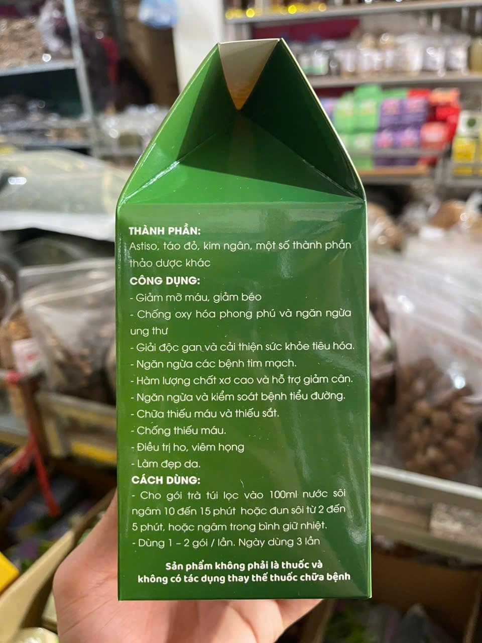 -Atiso, hoa nhài, táo đỏ, kim ngân, và một số thành phần thảo dược khác.
