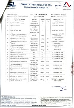 – Kiểm nghiệm chất lượng bởi Trung tâm kiểm nghiệm Khoa học TSL tiêu chuẩn ISO/IEC 17025:2017